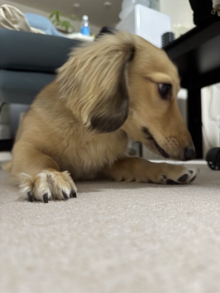 ミニチュアダックスは胴が長く、ヘルニアになりやすい犬種なので、できるだけ腰に負担がかからない生活が必要と思いました。
